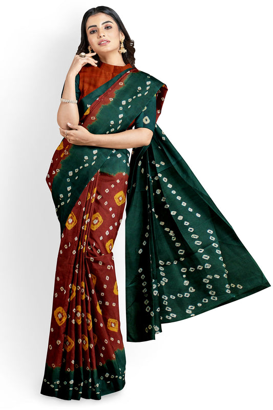 Cotton Bandhani Saree With Unstitched Blouse Piece