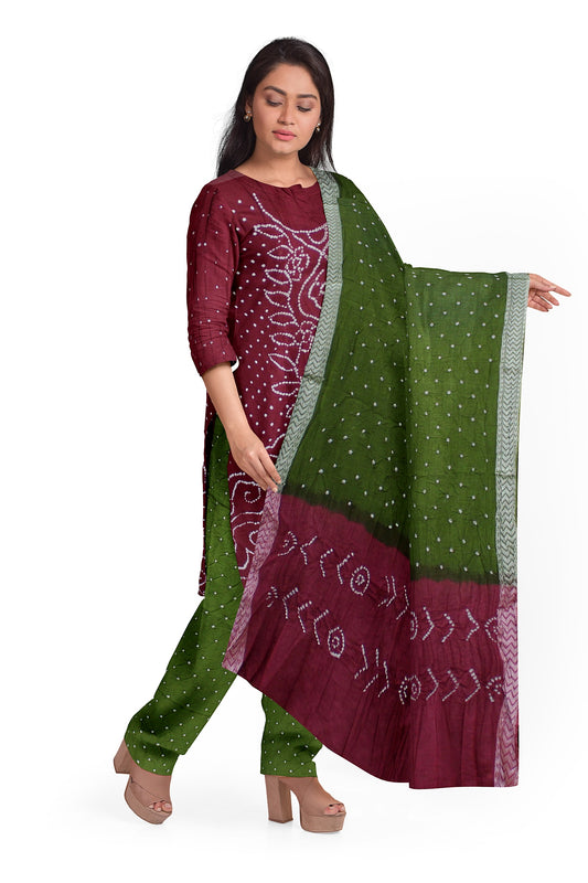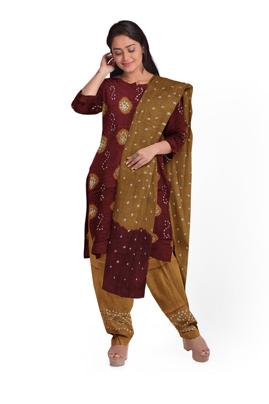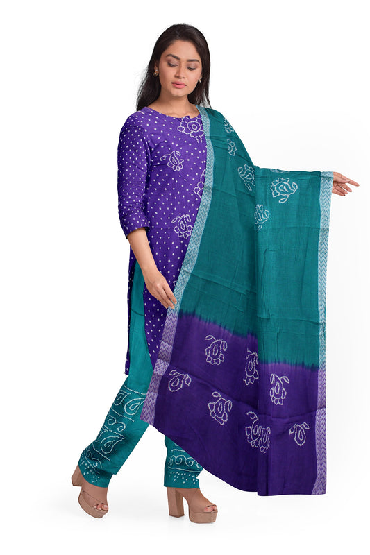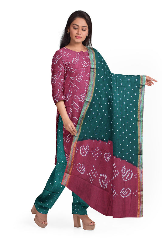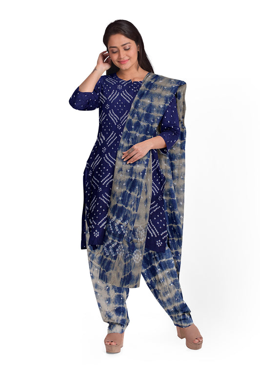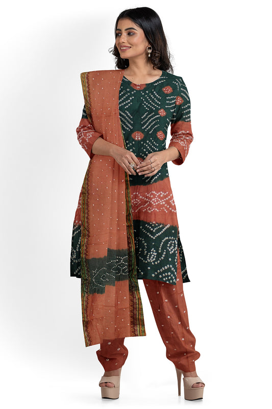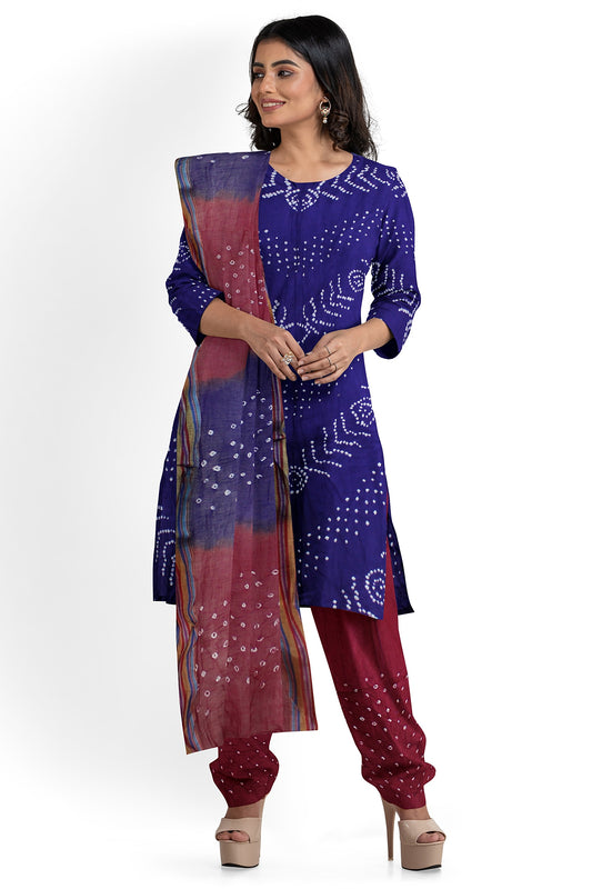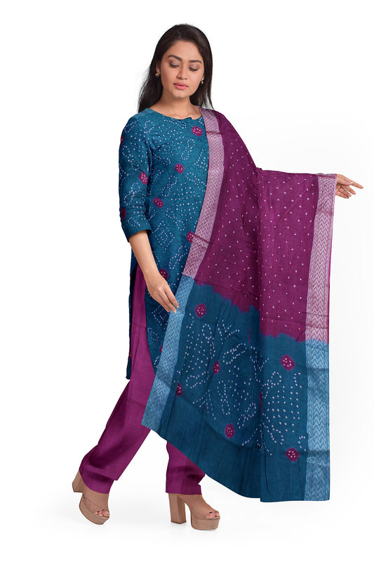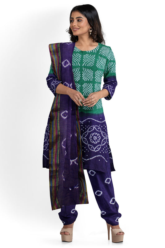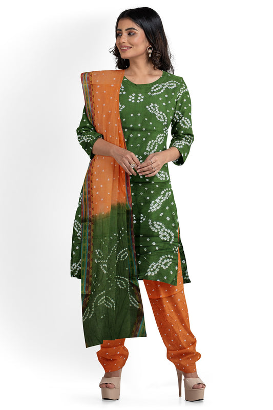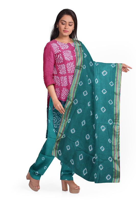 Cotton Bandhani Dress Material | Cotton Suit Set| 3PC Suitset | Salwar Suit Material | Unstitched