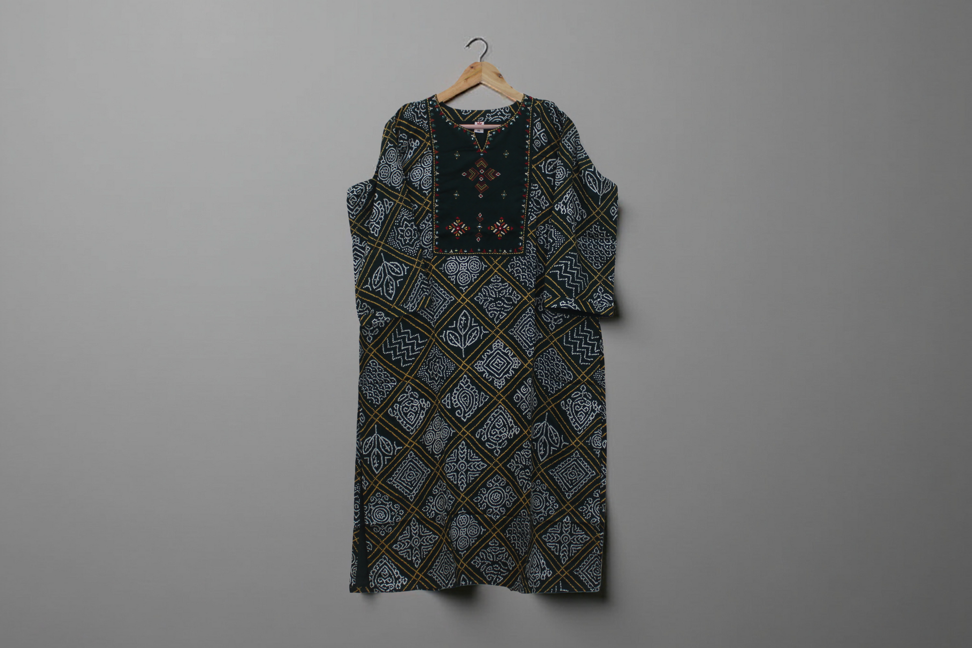 Bandhani Print Kurta with Embroidered Yoke