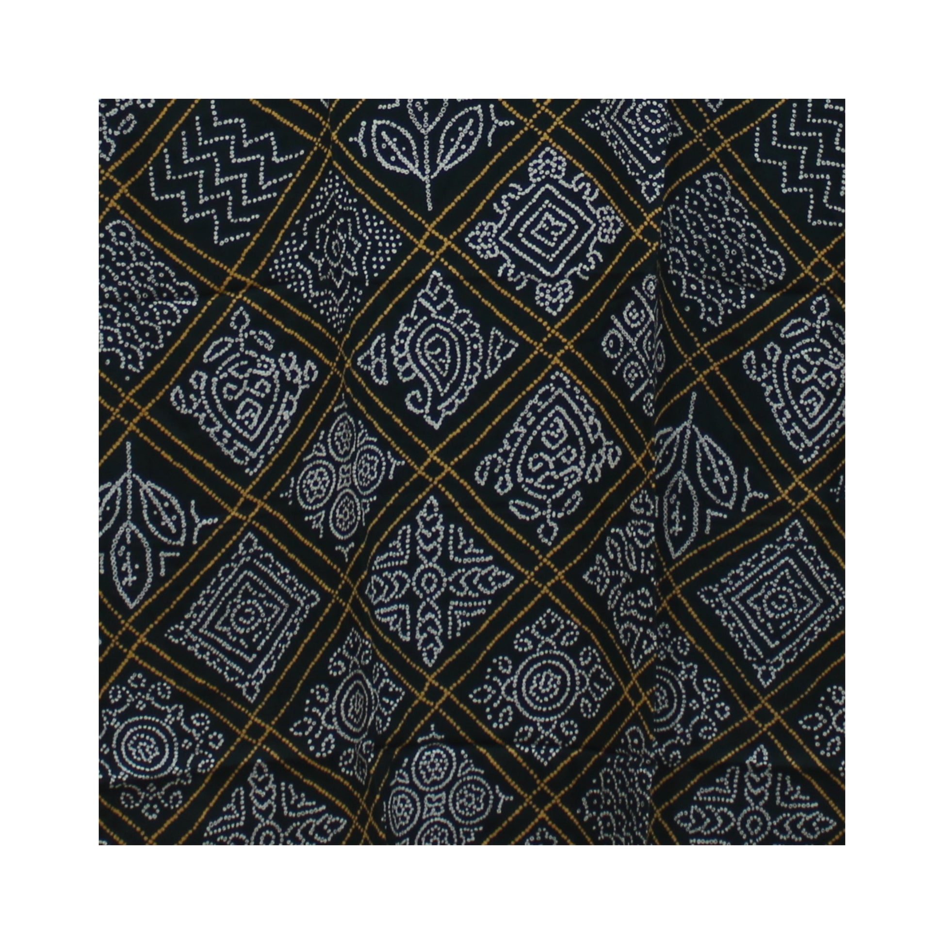 Traditional Print: Features an intricate, all-over Bandhani/tie-dye print with fine dots and geometric motifs.