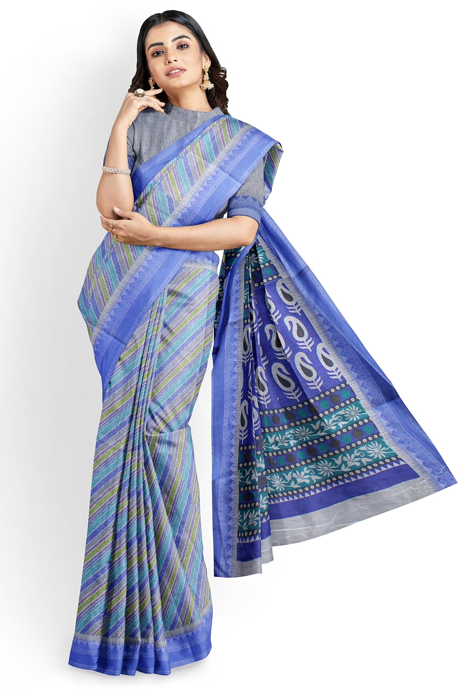 Elegant Women's Printed Cotton Saree with Unstitched Blouse